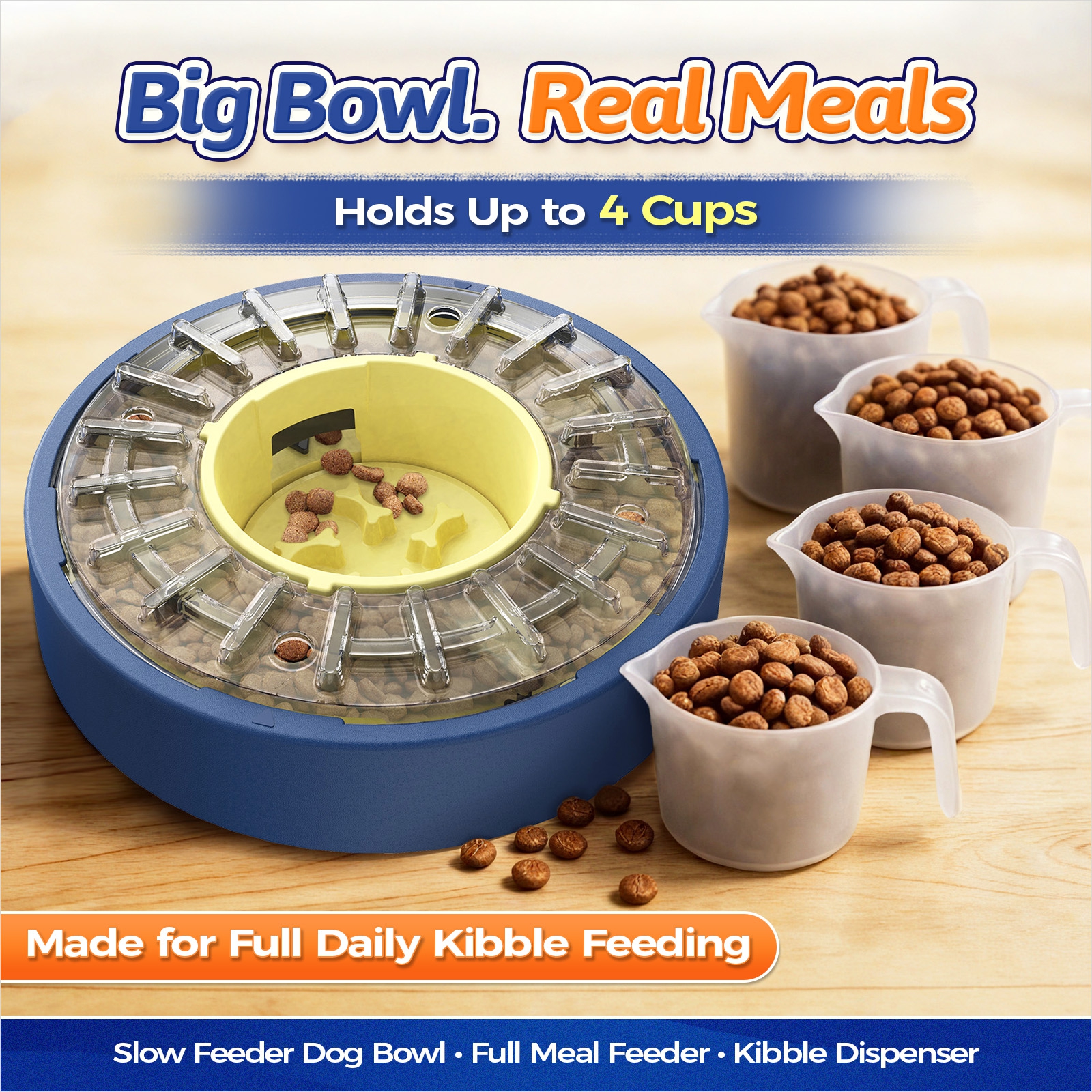 A: Yes. This adjustable slow feeder helps turn fast gulping into slower, more controlled eating. Depending on your dog, kibble size, and setting, mealtime can stretch from about 5 to 60 minutes.