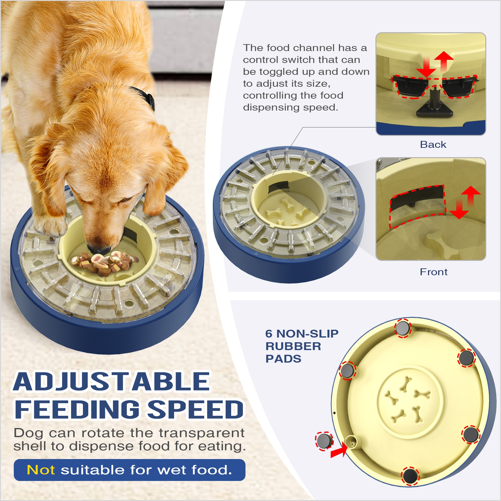 1 [True Slow Feeder] This is an innovatively designed dog slow feeder, capable of extending dog's mealtime. With the product's adjustable function, you can control your dog's feeding time from 5 to 60 minutes. The slow eating habit can enhance your dog's digestive health and physical fitness, alleviate boredom, consume excess energy, and serve as a puzzle toy for your dog;