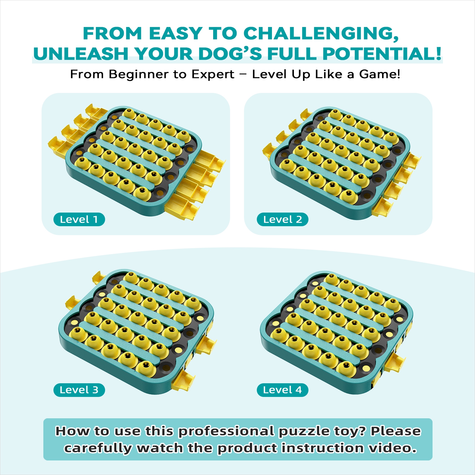 1 [Advanced Dog Puzzle Toy] This innovative puzzle toy combines four levels of difficulty into one product. Your dog will work their way up from Level 1 to Level 4, gradually increasing the challenge. Starting simple and progressing to complex, this toy acts as a “game console” for your dog, keeping them mentally engaged and entertained. It’s the perfect way to effectively stimulate your dog’s intelligence and provide hours of enriching fun;