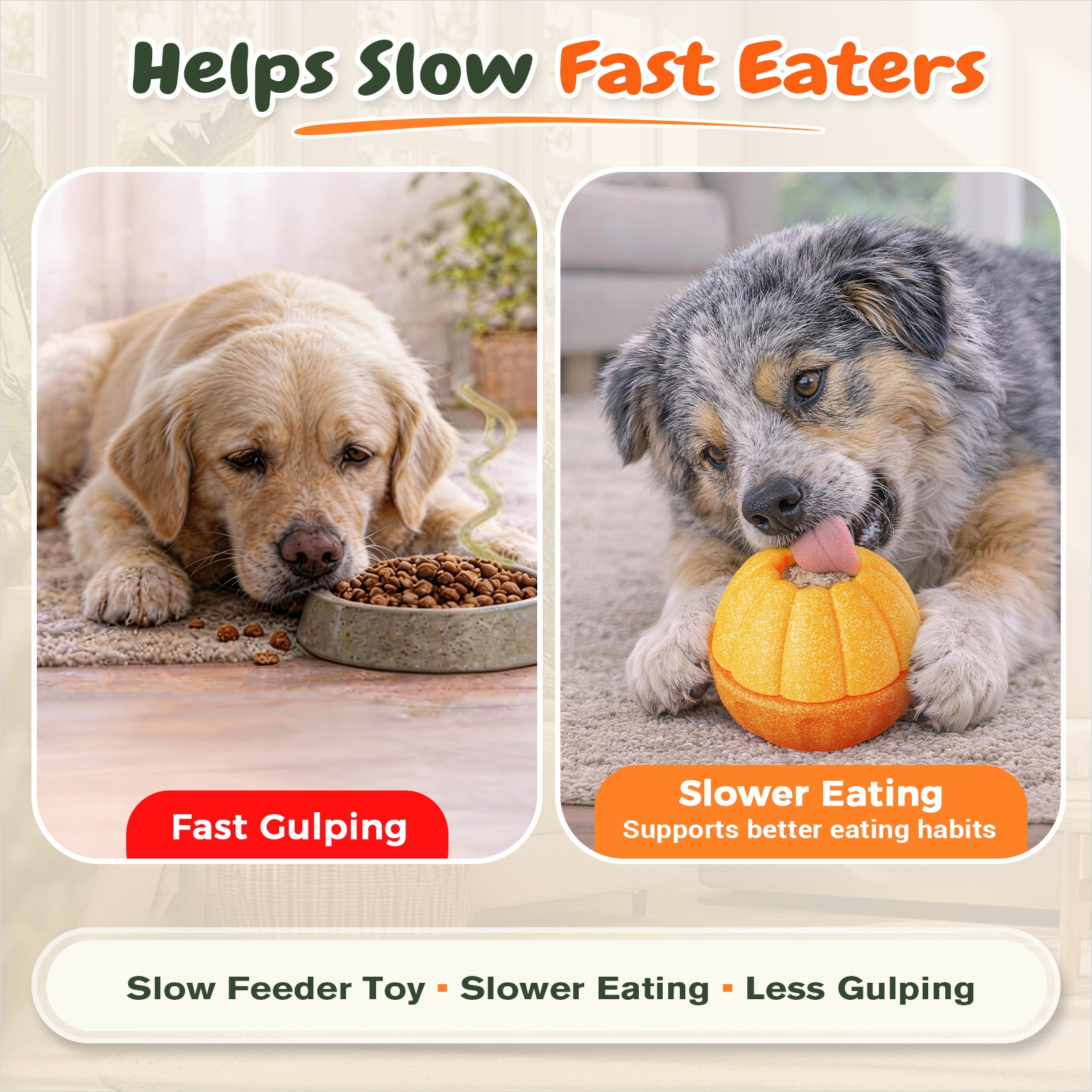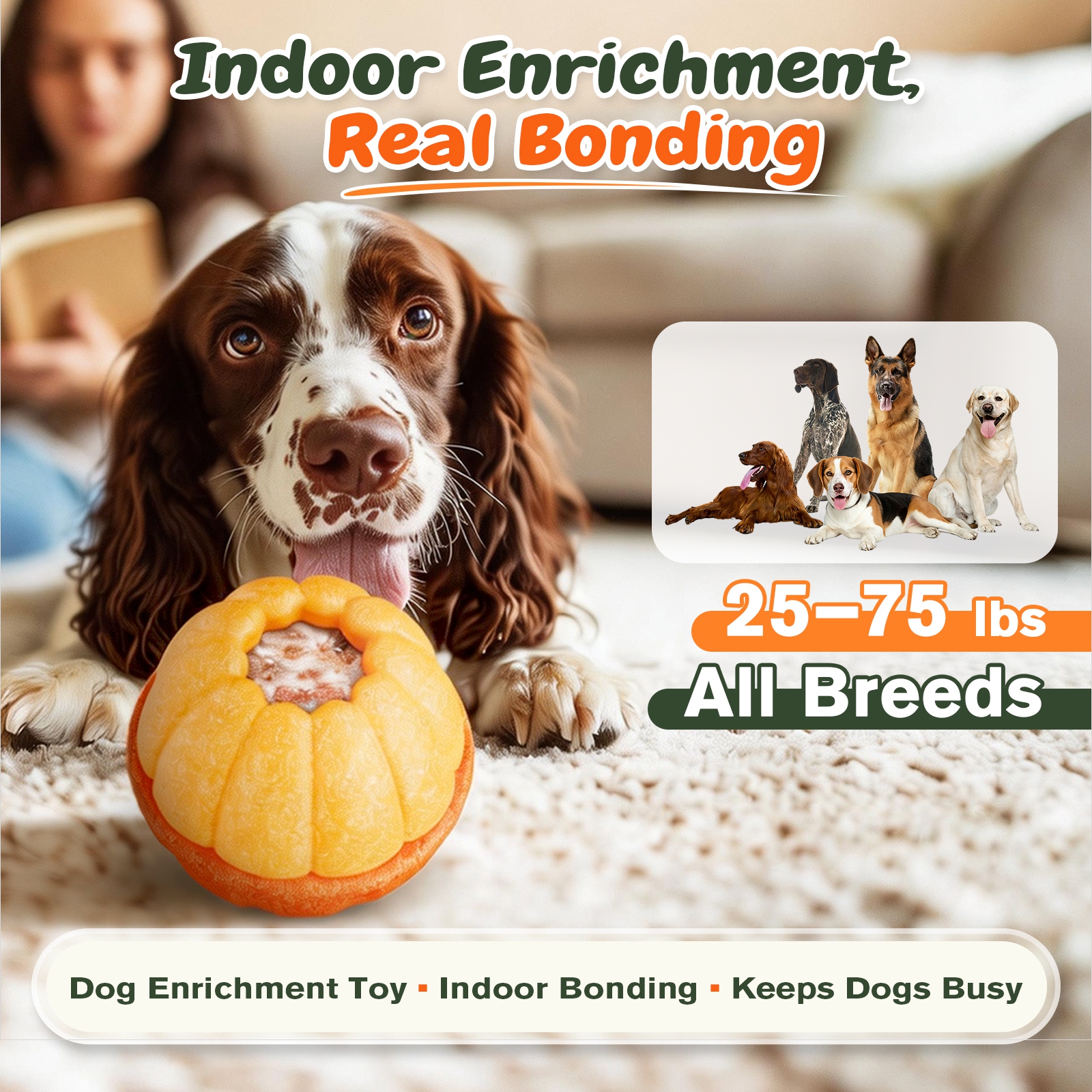 Best for food-motivated medium/large breeds. If you have a smaller or flat-faced dog that struggles to reach deep treats, consider a smaller option. For quieter play, use a rug/mat, and block tight under-furniture gaps to keep the toy from rolling away.