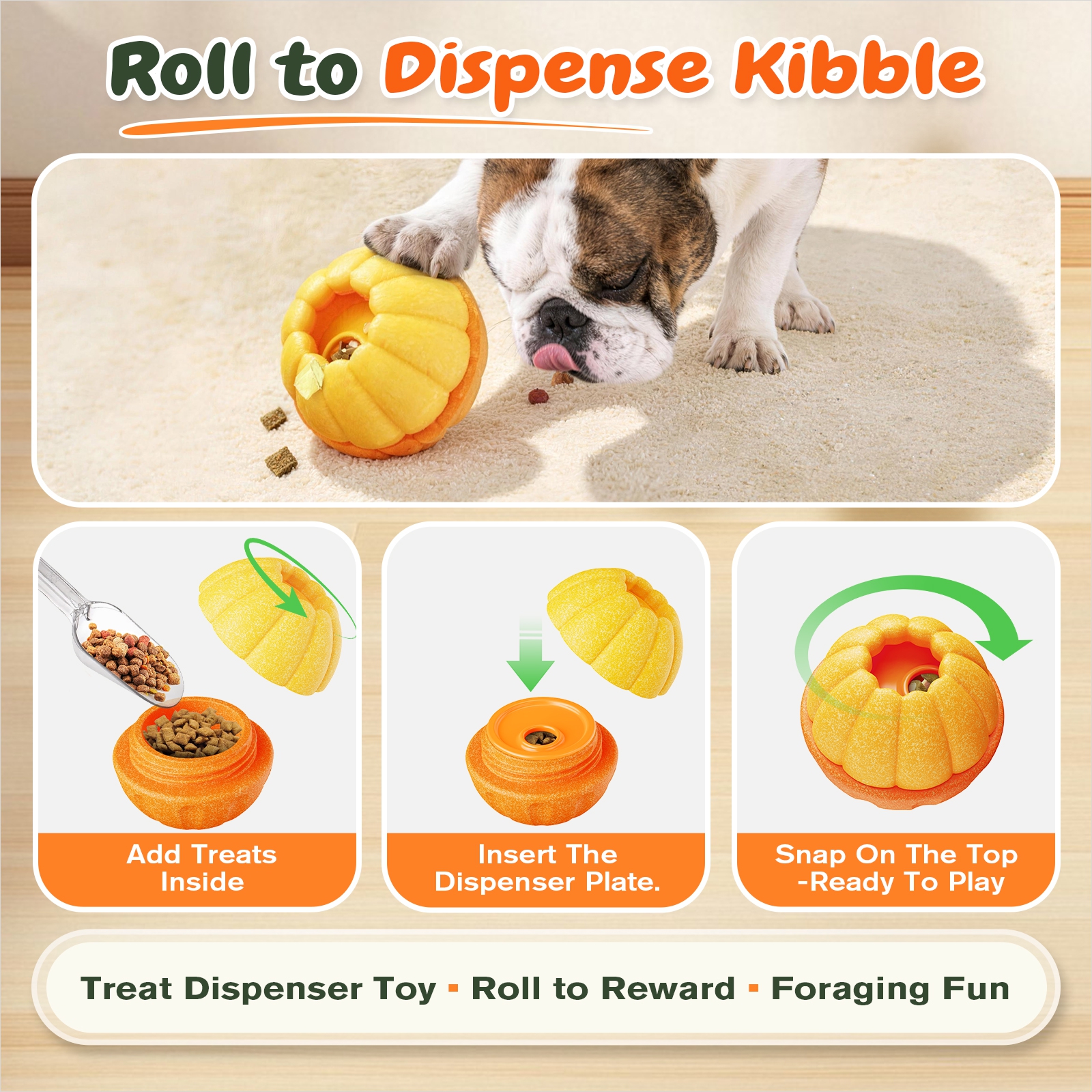 A: Use the dry-food insert/cover, add kibble, then your dog rolls the toy to release rewards little by little.