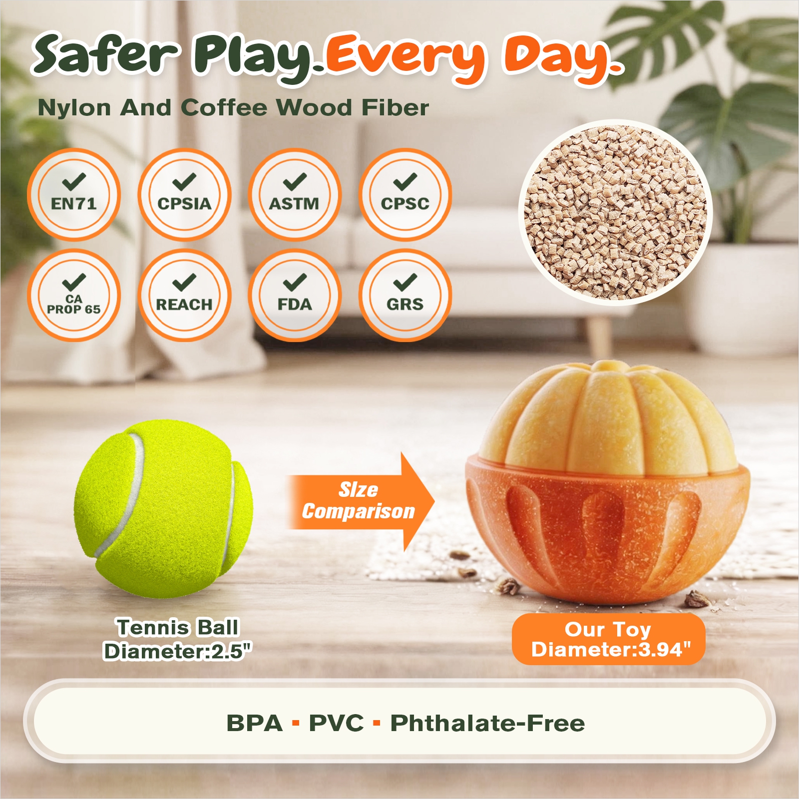 A: Made with food-grade nylon reinforced with natural coffee wood fiber and formulated without BPA, PVC, or phthalates.