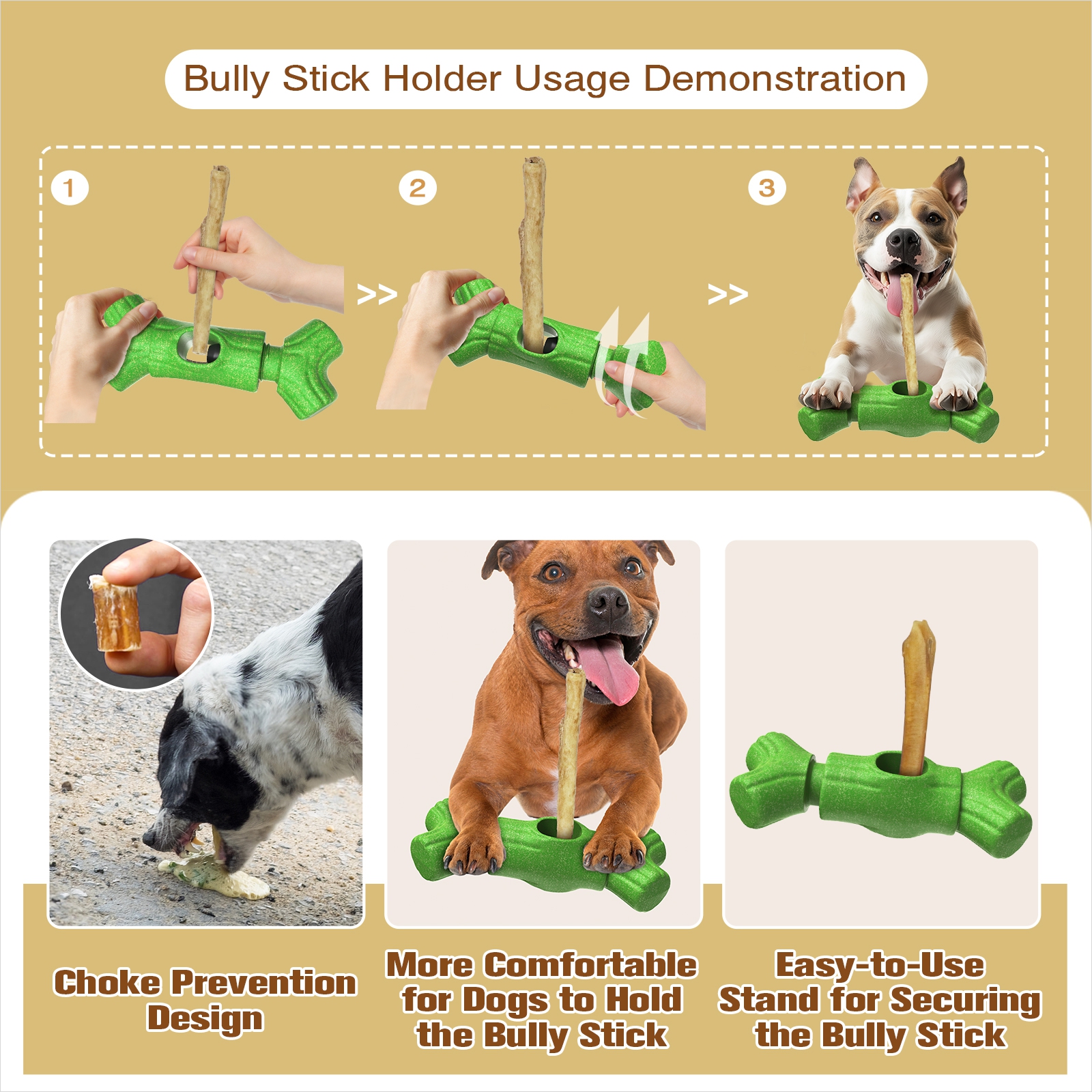 1 [Multi-functional Safety Toy] This is a stand designed to securely hold bully sticks, preventing choking and blockage risks while your dog chews. You can provide stick-shaped treats for your dog to chew on happily without worrying about safety issues. This toy is sturdy and durable, making it ideal as a chew toy. The stand is compatible with all treat sticks with a diameter smaller than 0.79 inches;