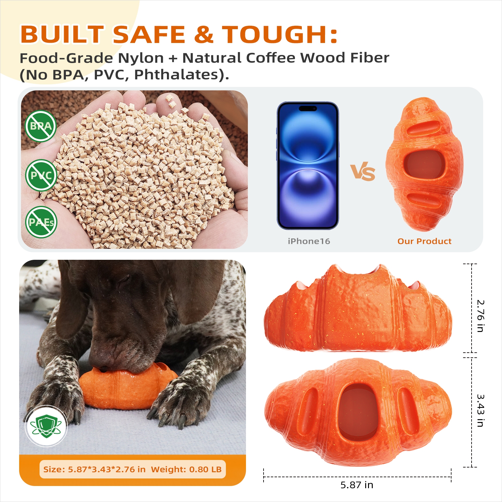 2 [Safe Design & Materials] Crafted with your pet’s health in mind, this toy is made from premium food-grade nylon and natural coffee wood fiber. Our innovative manufacturing process ensures a tough, chew-resistant build that’s completely pet-safe – absolutely no BPA, PVC, or phthalates. You can trust that every lick and chew is safe, allowing your pup to play and gnaw to their heart’s content. From raw materials to finished product, every aspect is tested for safety, giving you peace of mind while your dog plays;
