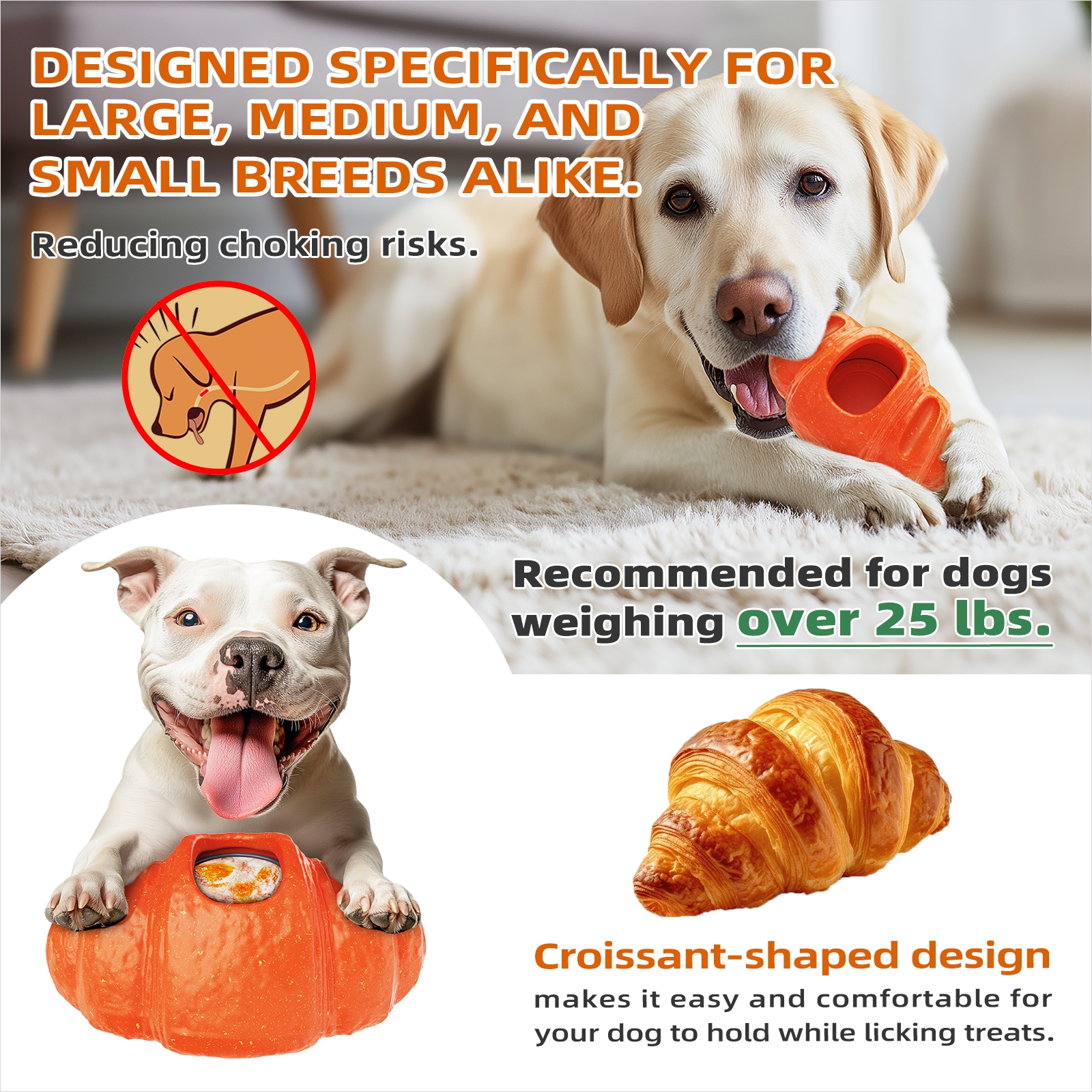 3 [Designed Specifically for Dogs' Natural Habits] The toy features a croissant-inspired design with a cylindrical structure, allowing dogs to comfortably use it. When licking frozen food blocks or peanut butter applied to the grooves, dogs can press down on the sturdy base with their paws for a more stable and enjoyable experience;