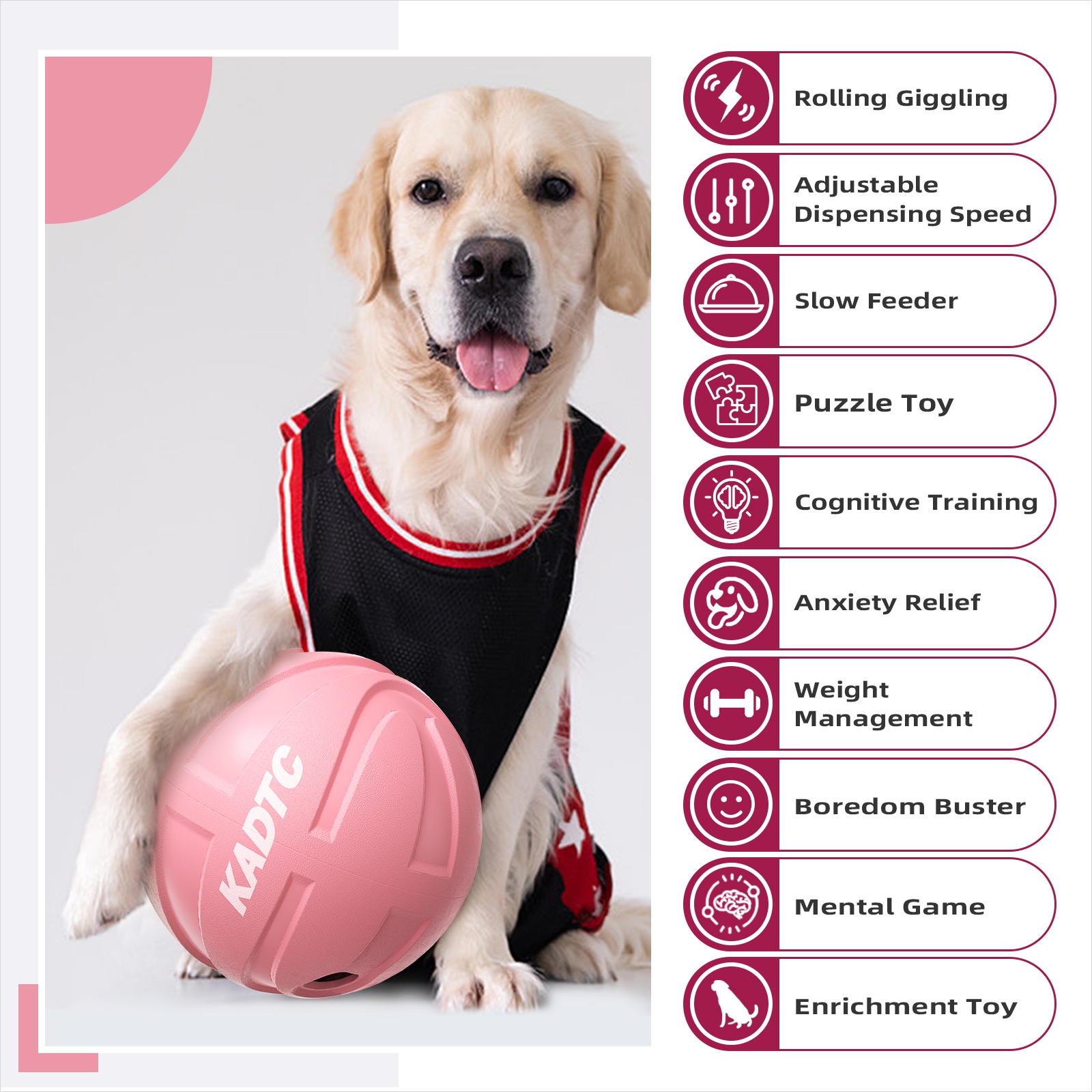 [Slam Dunk Treat Time for Big Dogs]Shaped like a basketball, this treat-dispensing toy turns treat time into an all-star game for your pup! Perfect for dogs over 25 lbs, the 5.6-inch ball holds 9.2 oz of kibble and is built tough for indoor or outdoor play. This interactive dog toy isn't just a ball – it's a 4-in-1 slow feeder, puzzle, training aid, and giggle sound maker that keeps your dog engaged. Proudly created by KADTC, an American brand with a U.S. patented design, it's the ultimate treat ball for large dogs and a slam dunk gift for your canine MVP on any special occasion.