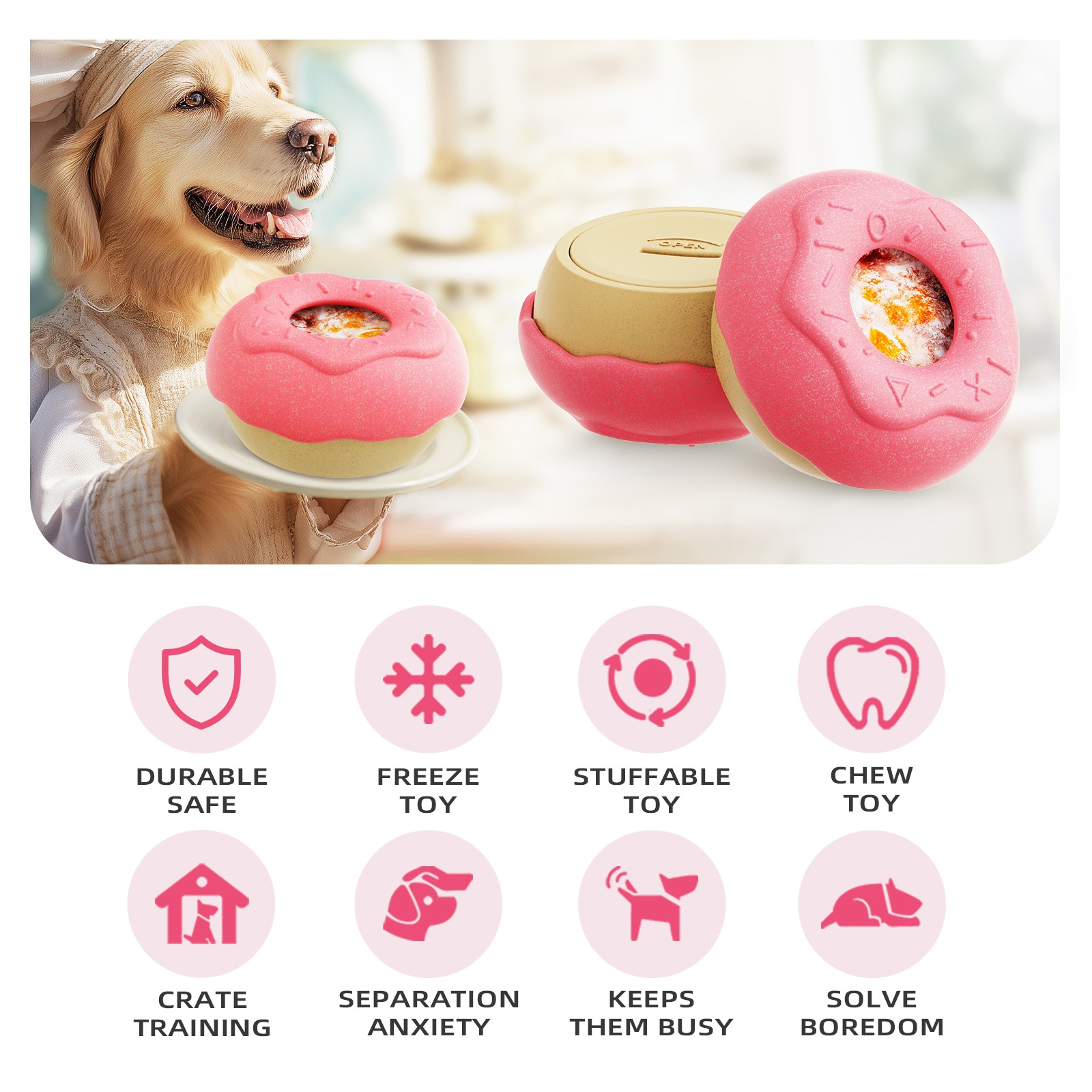 3 [Designed Specifically for Dogs' Natural Habits] The toy features a Doughnut-inspired design, allowing dogs to comfortably use it. When licking frozen food blocks or peanut butter applied to the grooves, dogs can press down on the sturdy base with their paws for a more stable and enjoyable experience;