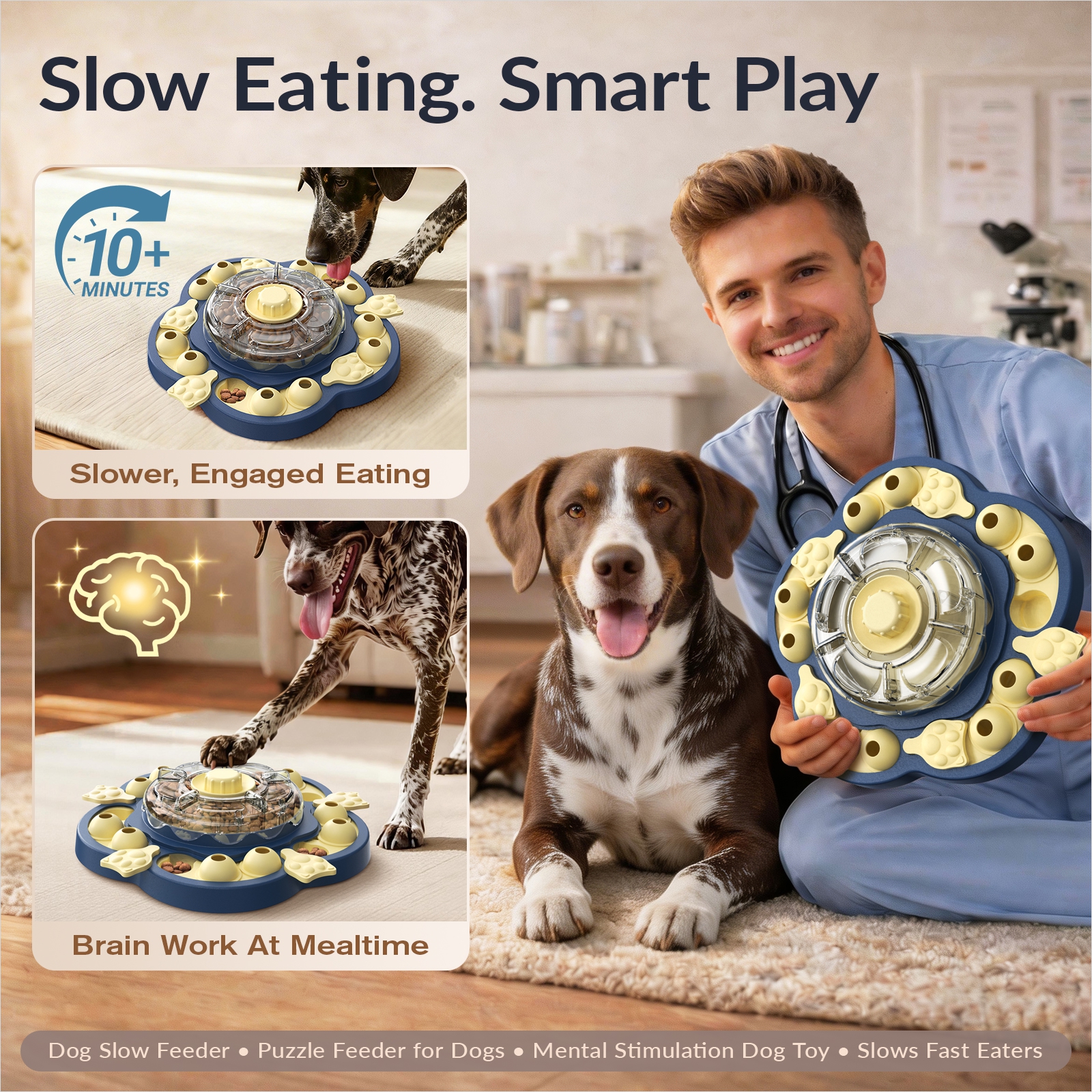 A: Yes. This toy works as a slow feeder dog bowl, so dogs have to work for each bite instead of inhaling food all at once. It’s a great fit for dogs that gulp meals too fast and need a slower, more engaging feeding routine.
