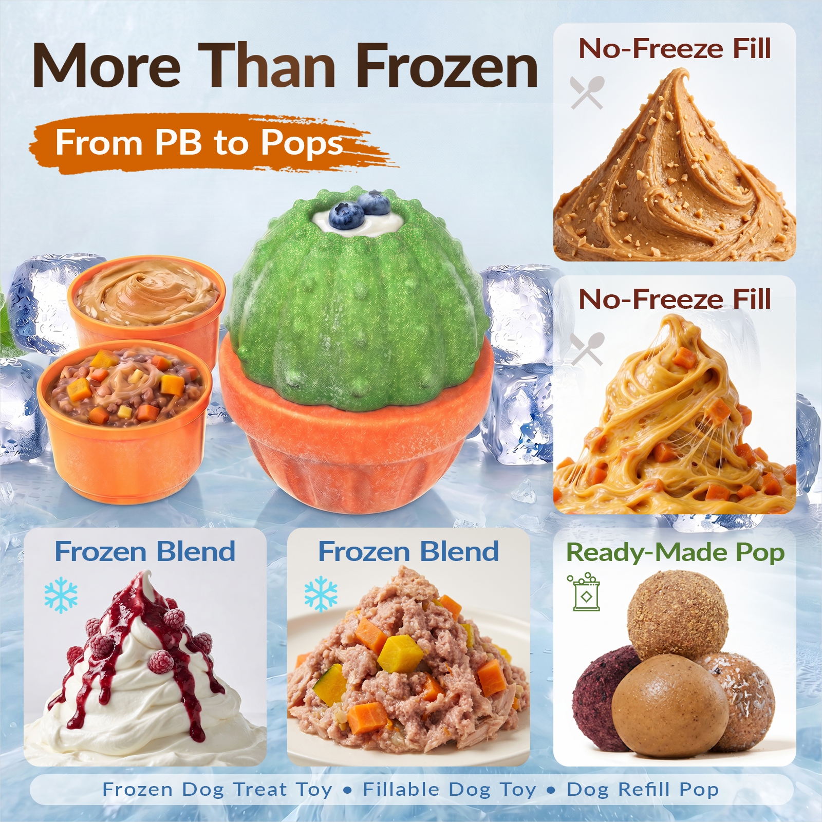 KADTC ALL IN ONE 3 in 1 Dog Enrichment Toys - Fillable Freeze Treat Dispenser Chew Toy Cactus