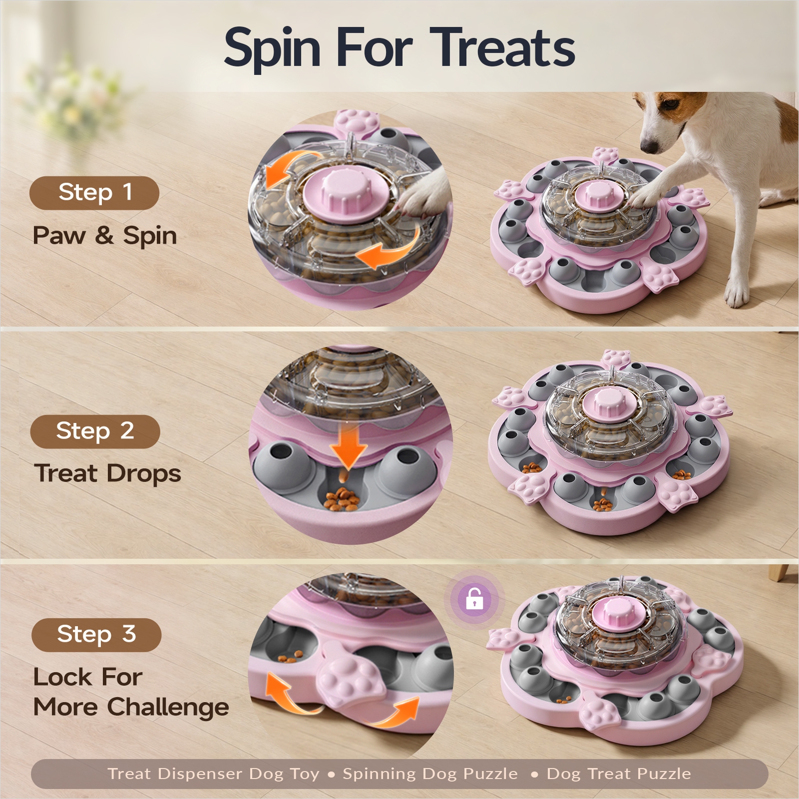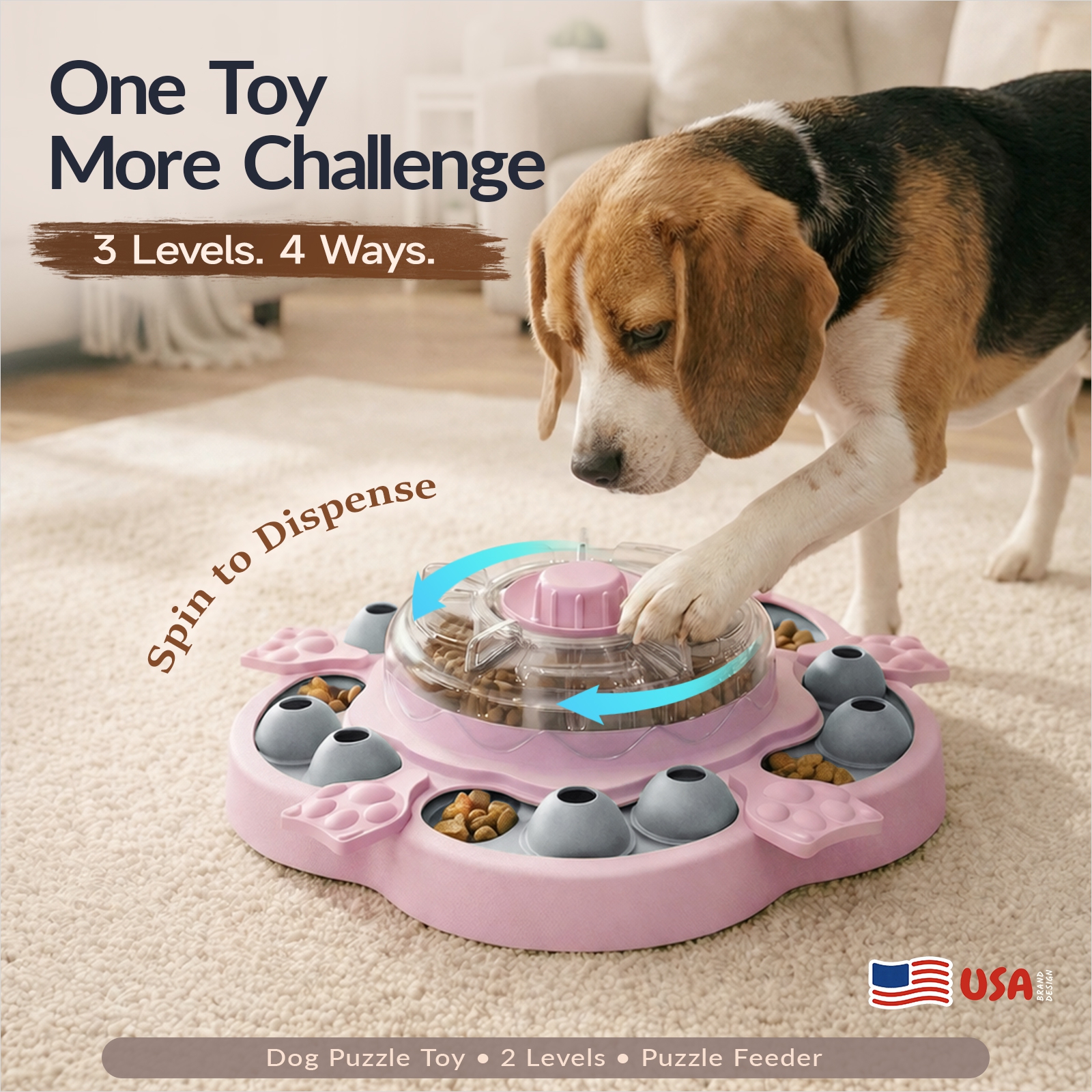 KADTC 3 Levels IN 1 Dog Puzzle Feeder Spin-to-Release Treat Dispenser Toy