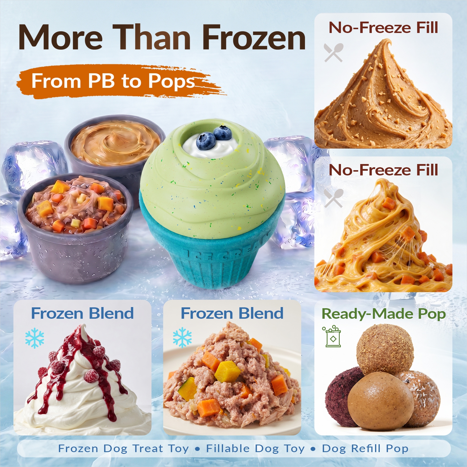 Fill the included freezer cups with peanut butter, yogurt, pumpkin, broth, puree, or your own recipe, freeze ahead, and insert them straight into the toy—no messy unmolding. It’s a cleaner, easier way to create a longer-lasting lick session that keeps dogs focused and happily busy.